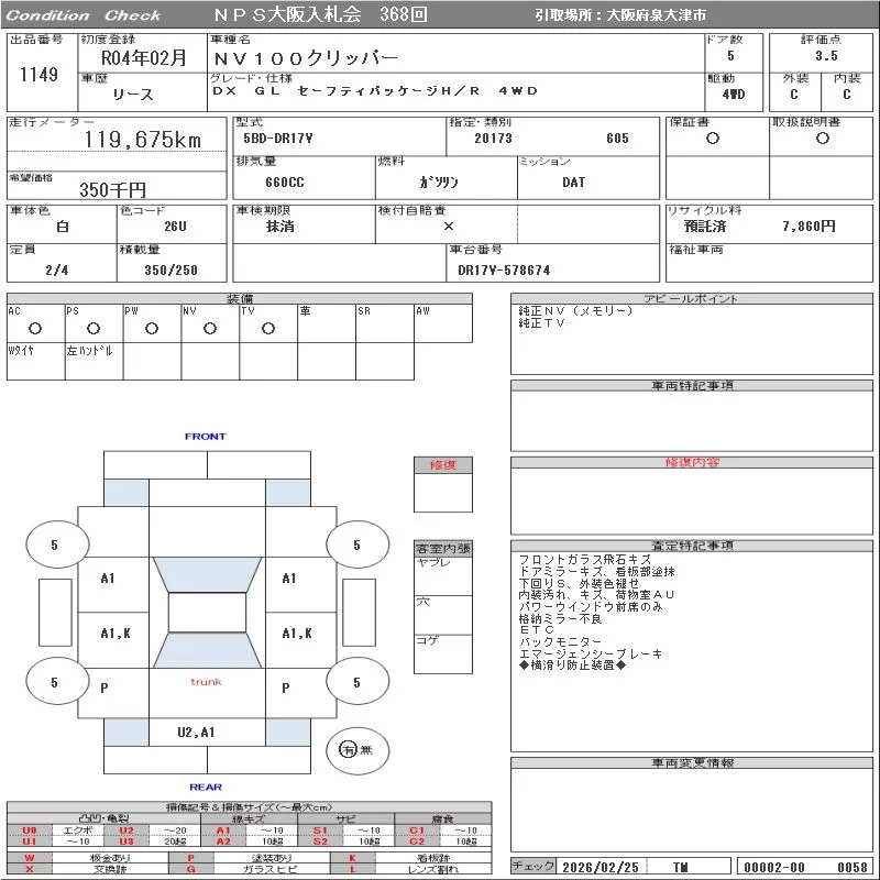 Надёжный авто с проверенного аукциона NPS Osaka Nyusatsu