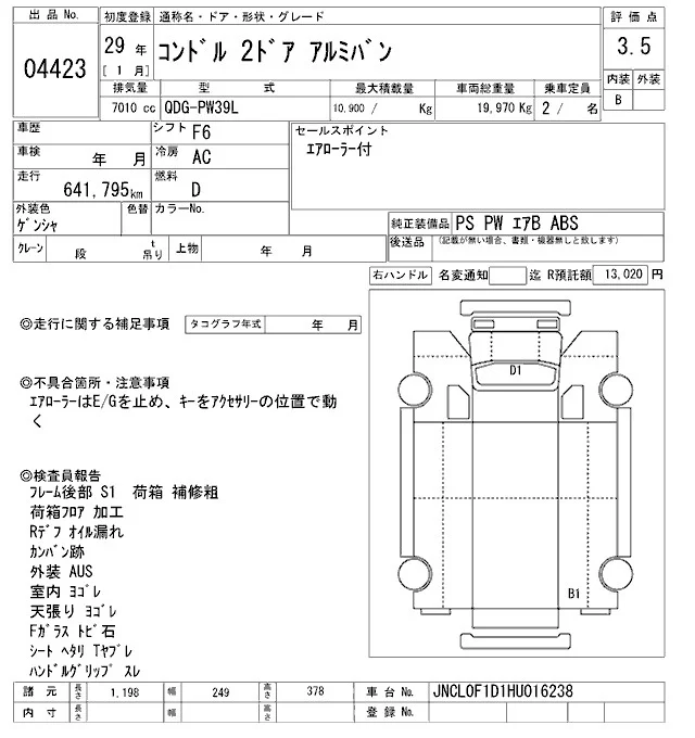 Дополнительными расходами может быть "сверхнормативное" хранение в порту, согласно СВХ "ВАТ": с 6-8 сутки по 1000р, 9-10 сутки по 2000р, с 11 суток по 5000р. Так же, в случае оформления а/м на физ лицо с пропиской не ДВФО, брокер предоставляет либо услугу оформления на ДВ физика стоимостью 20000р или регистрация ФЛ стоимостью 10000р. Вся представленная на сайте информация, касающаяся технических характеристик, наличия на складе, стоимости товаров, носит информационный характер и ни при каких условиях не является публичной офертой, определяемой положениями Статьи 437(2) Гражданского кодекса РФ.