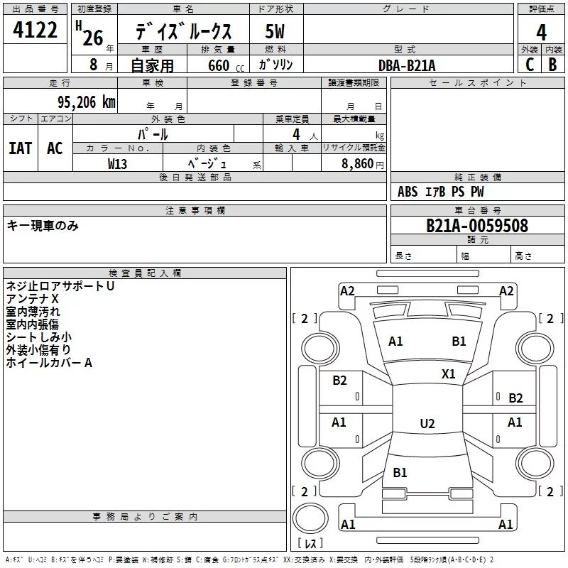 X | DBA-B21A | 3B20 | FF | CVT | 659cc | 49ps(36kW)/6500rpm | AИ-92 | 1 338 750 | |