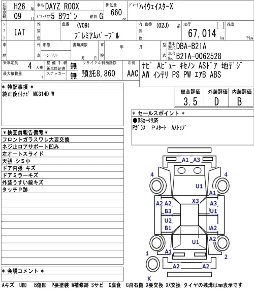 HIGHWAY STAR X V SELECTION +SAFETY II | DBA-B21A | 3B20 | FF | CVT | 659cc | 49ps(36kW)/6500rpm | AИ-92 | 1 594 080 | |
