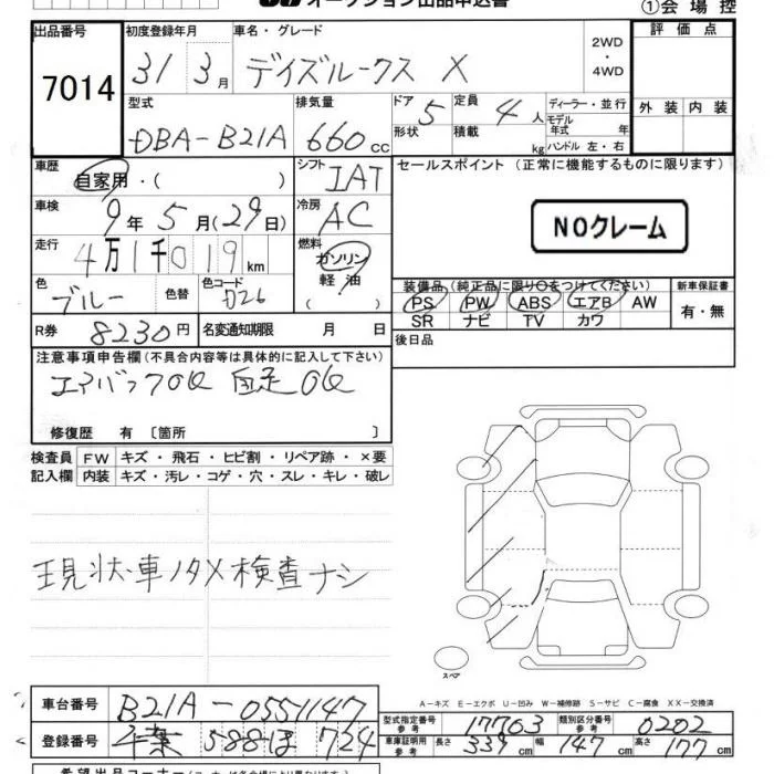 X | DBA-B21A | 3B20 | FF | CVT | 659cc | 49ps(36kW)/6500rpm | AИ-92 | 1 463 000 | |