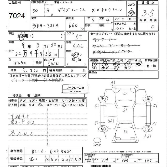 X V SELECTION | DBA-B21A | 3B20 | FF | CVT | 659cc | 49ps(36kW)/6500rpm | AИ-92 | 1 501 200 | |
