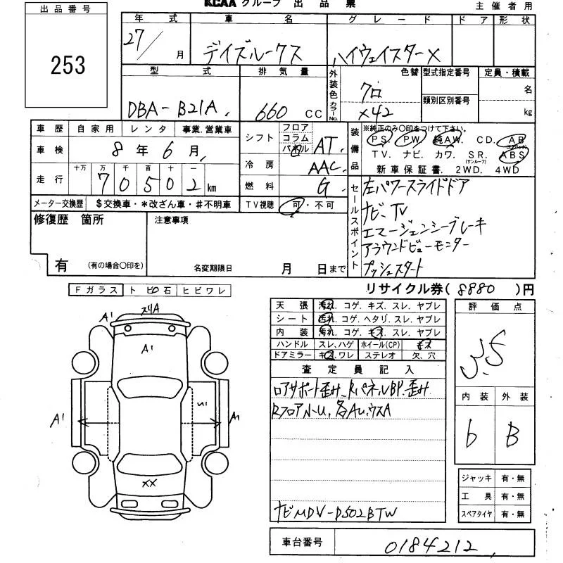 HIGHWAY STAR X V SELECTION | DBA-B21A | 3B20 | Full-time 4WD | CVT | 659cc | 49ps(36kW)/6500rpm | AИ-92 | 1 804 680 | |