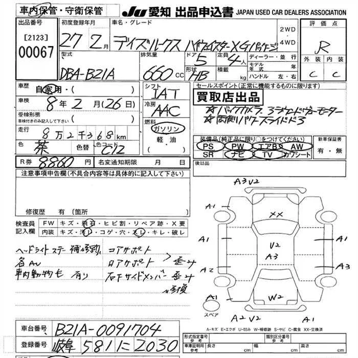 HIGHWAY STAR X V SELECTION | DBA-B21A | 3B20 | Full-time 4WD | CVT | 659cc | 49ps(36kW)/6500rpm | AИ-92 | 1 804 680 | |