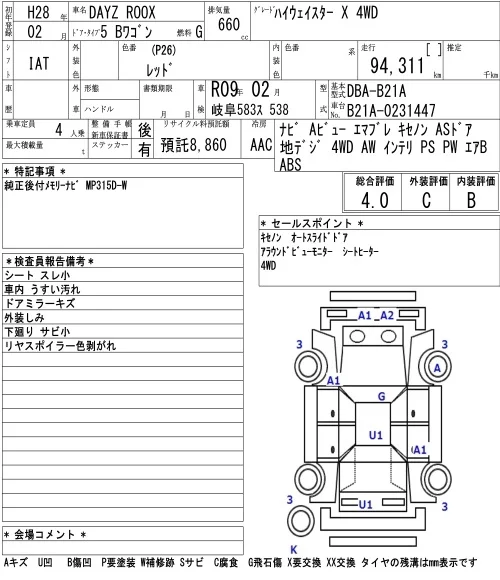 X | DBA-B21A | 3B20 | Full-time 4WD | CVT | 659cc | 49ps(36kW)/6500rpm | AИ-92 | 1 559 520 | |