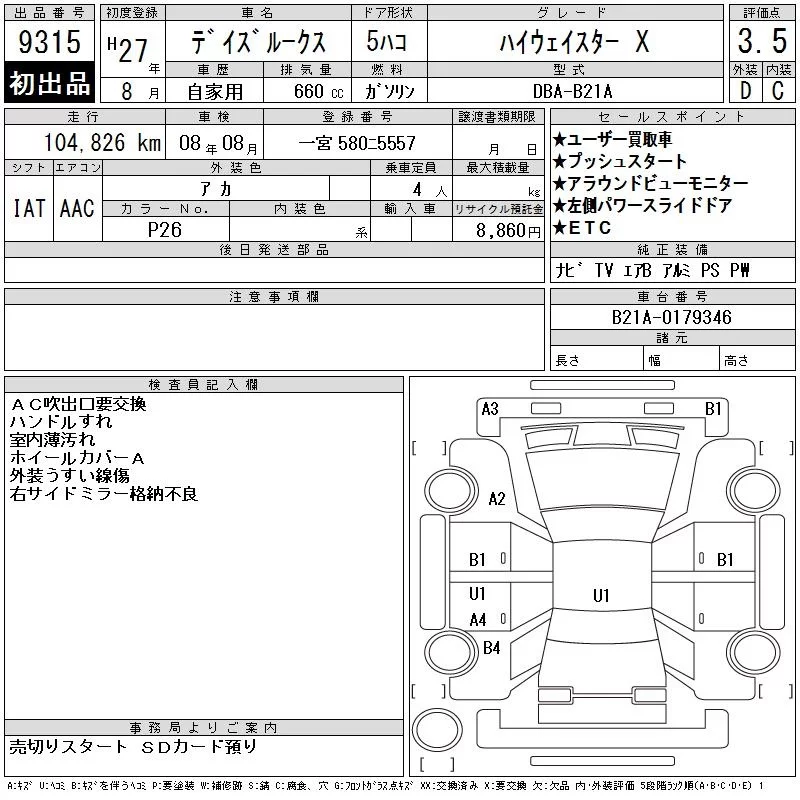 HIGHWAY STAR X V SELECTION | DBA-B21A | 3B20 | FF | CVT | 659cc | 49ps(36kW)/6500rpm | AИ-92 | 1 682 640 | |