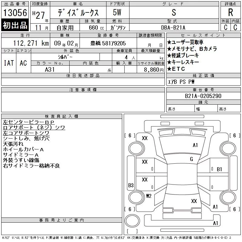 X | DBA-B21A | 3B20 | Full-time 4WD | CVT | 659cc | 49ps(36kW)/6500rpm | AИ-92 | 1 559 520 | |