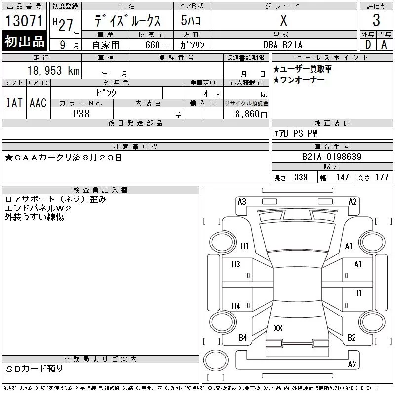X V SELECTION | DBA-B21A | 3B20 | FF | CVT | 659cc | 49ps(36kW)/6500rpm | AИ-92 | 1 499 040 |