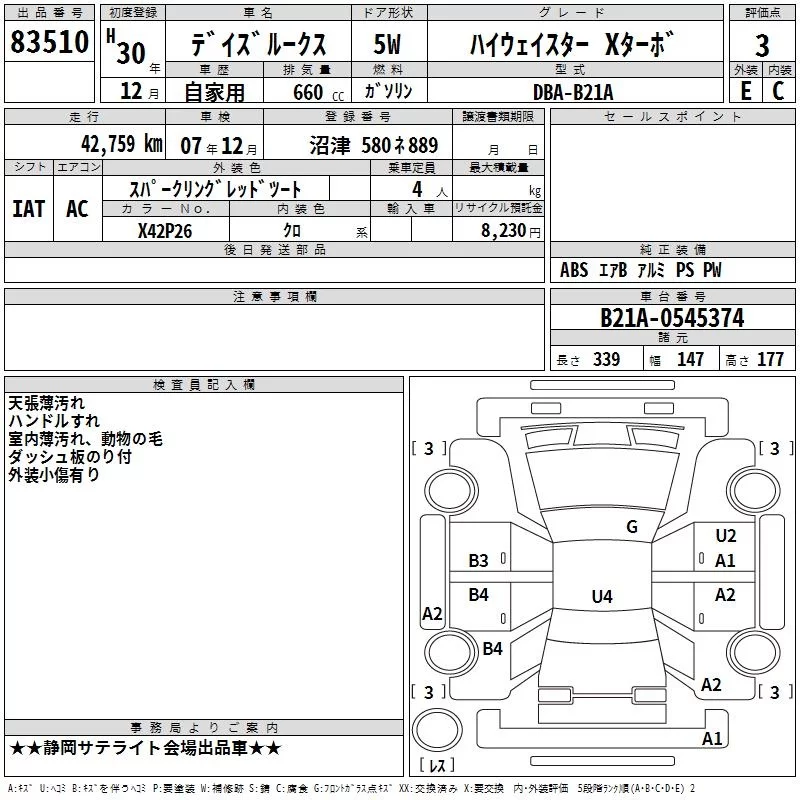 S EMERGENCY BRAKE LESS | DBA-B21A | 3B20 | FF | CVT | 659cc | 49ps(36kW)/6500rpm | AИ-92 | 1 245 240 |