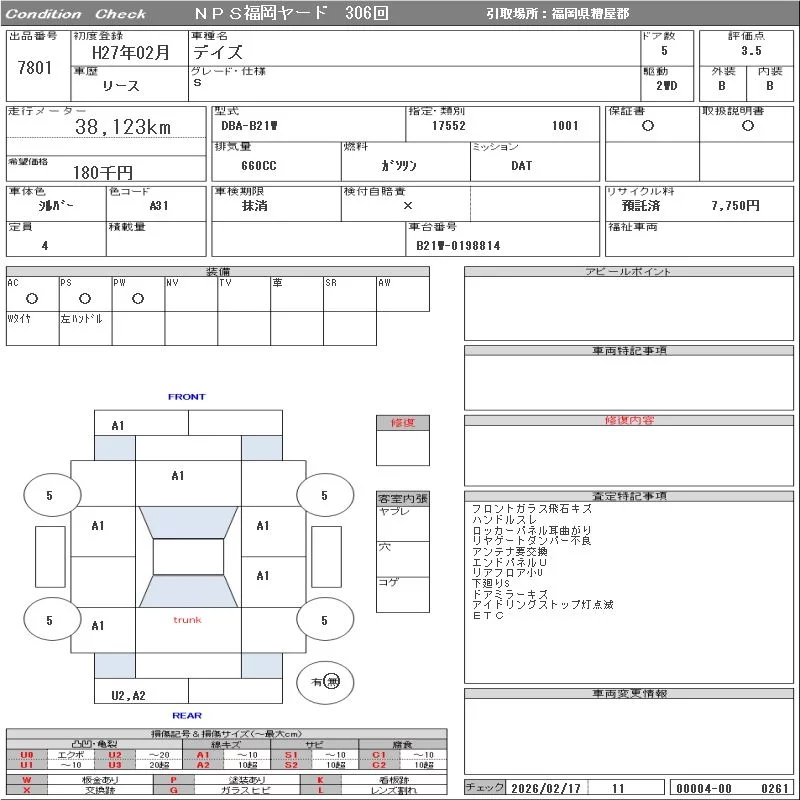 Надёжный авто с проверенного аукциона NPS Fukuoka Nyusatsu