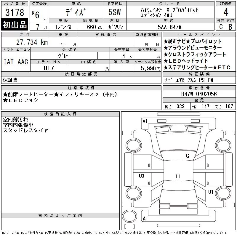 • Комплектация: Highway Star -X Pro パイ Low 4WD