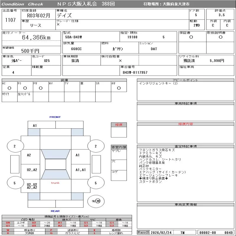 Надёжный авто с проверенного аукциона NPS Osaka Nyusatsu
