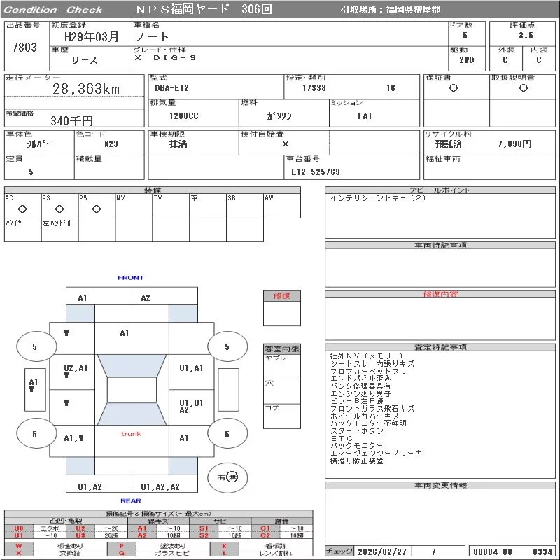 Надёжный авто с проверенного аукциона NPS Fukuoka Nyusatsu
