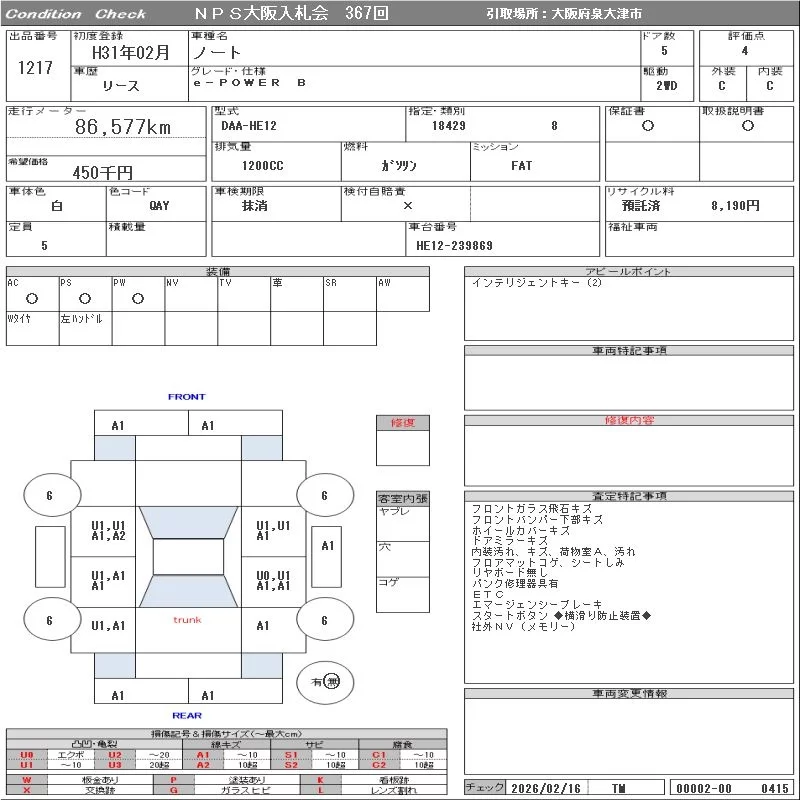 Надёжный авто с проверенного аукциона NPS Osaka Nyusatsu