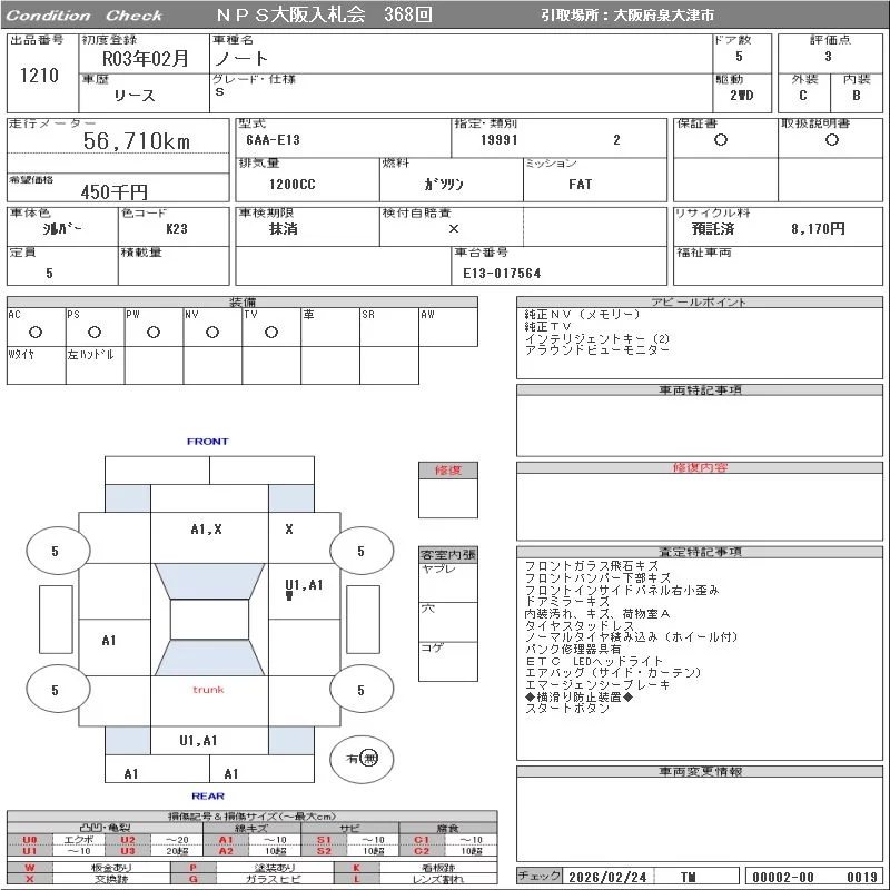 Надёжный авто с проверенного аукциона NPS Osaka Nyusatsu