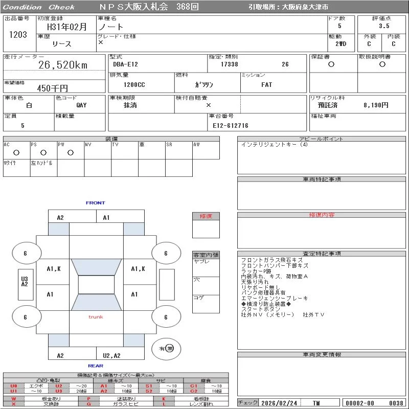 Надёжный авто с проверенного аукциона NPS Osaka Nyusatsu