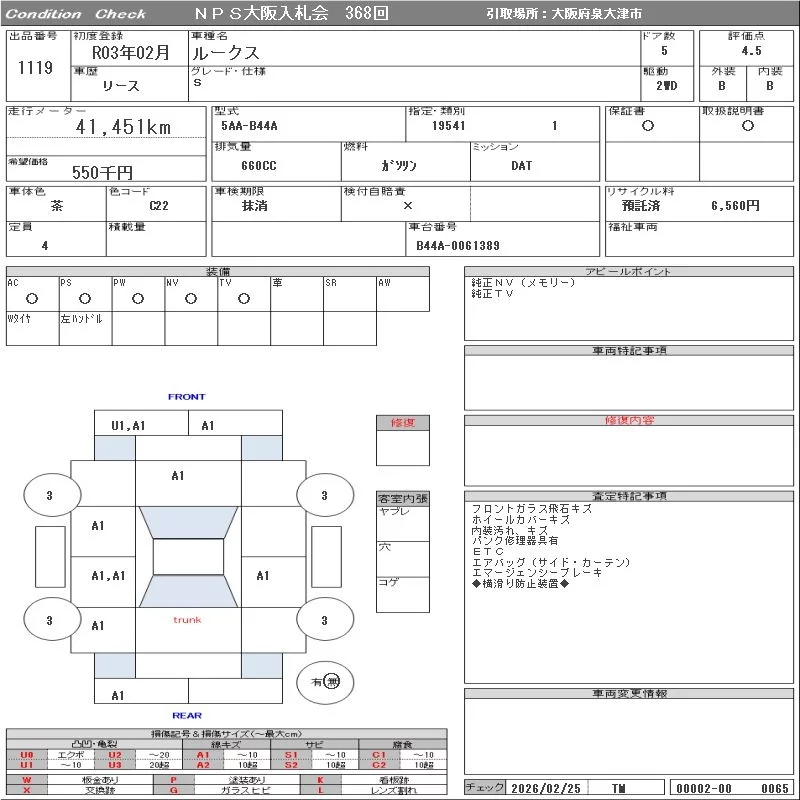 Надёжный авто с проверенного аукциона NPS Osaka Nyusatsu