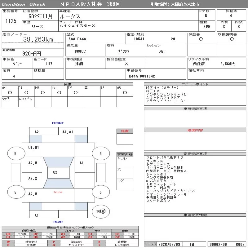 Надёжный авто с проверенного аукциона NPS Osaka Nyusatsu