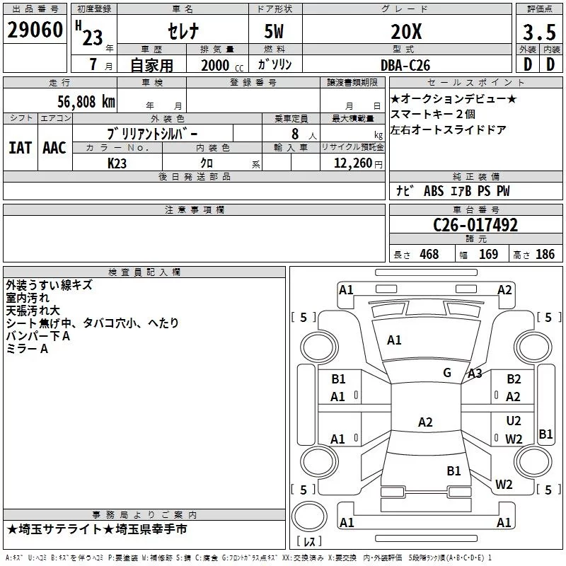 HIGHWAY STAR V AERO SELECTION | DBA-FC26 | MR20DD | FF | CVT | 1997cc | 147ps(108kW)/5600rpm | AИ-92 | 2 795 100 |