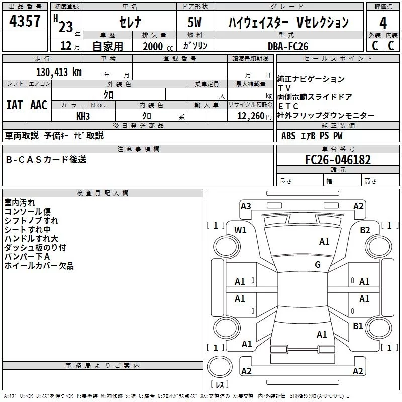 HIGHWAY STAR V AERO SELECTION | DBA-FC26 | MR20DD | FF | CVT | 1997cc | 147ps(108kW)/5600rpm | AИ-92 | 2 795 100 |