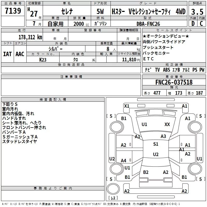 • Комплектация: H Star - V Selection +セ-フ 4WD