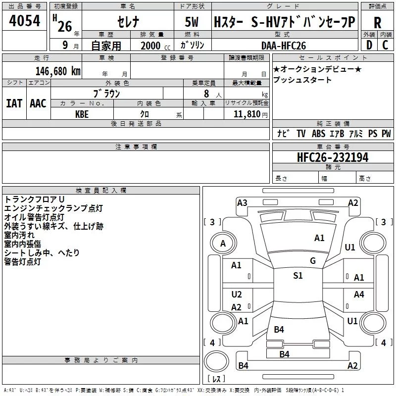 20G S-HYBRID | DAA-HC26 | MR20DD | FF | CVT | 1997cc | 147ps(108kW)/5600rpm | AИ-92 | 2 764 800 | |