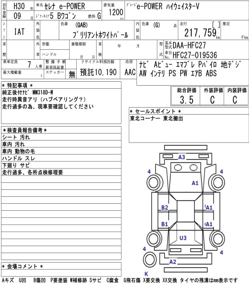 E-POWER HIGHWAY STAR V | DAA-HFC27 | HR12DE | FF | CVT | 1198cc | 84ps(62kW)/6000rpm | AИ-92 | 3 404 160 | |