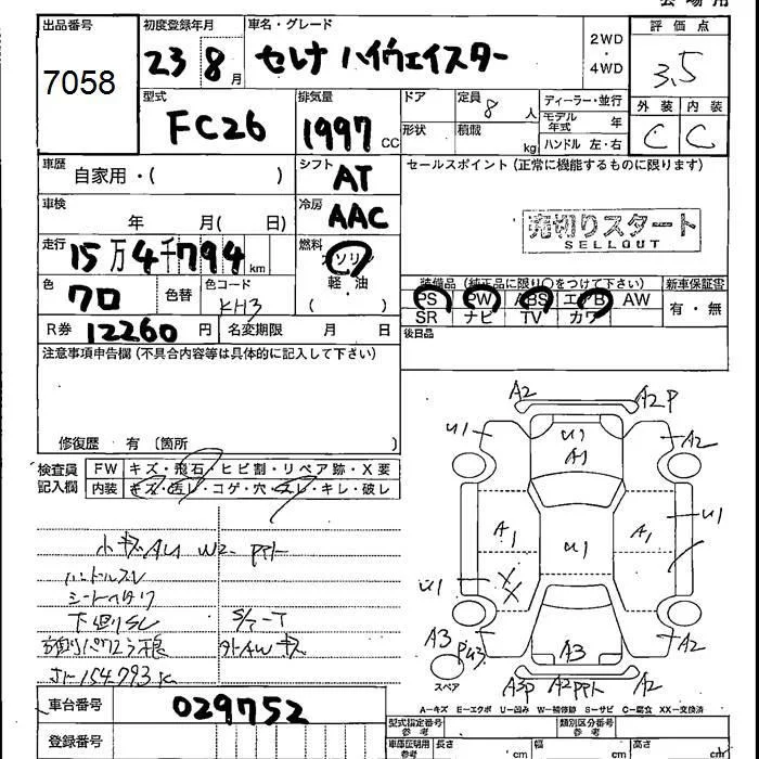 HIGHWAY STAR V AERO SELECTION | DBA-FC26 | MR20DD | FF | CVT | 1997cc | 147ps(108kW)/5600rpm | AИ-92 | 2 795 100 |