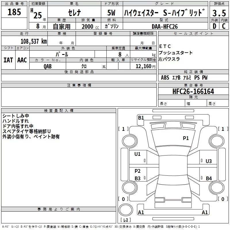HIGHWAY STAR S-HYBRID V AERO MODE | DAA-HFC26 | MR20DD | FF | CVT | 1997cc | 147ps(108kW)/5600rpm | AИ-92 | 2 698 500 | |