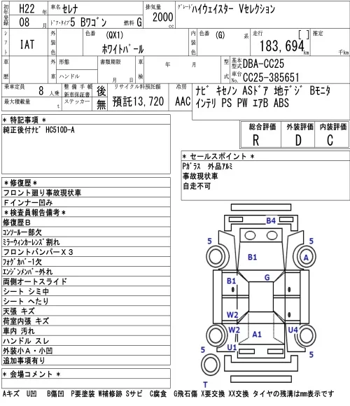 HIGHWAY STAR V AERO SELECTION PLUS NAVI HDD | DBA-CNC25 | MR20DE | Full-time 4WD | CVT | 1997cc | 129ps(95kW)/5200rpm | AИ-92 | 3 041 850 | |