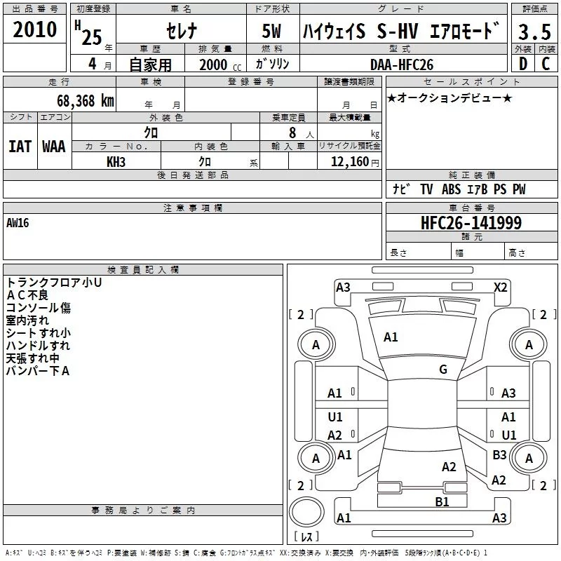HIGHWAY STAR S-HYBRID V AERO MODE | DAA-HFC26 | MR20DD | FF | CVT | 1997cc | 147ps(108kW)/5600rpm | AИ-92 | 2 698 500 | |