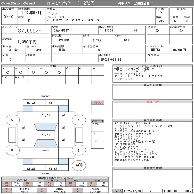 Надёжный авто с проверенного аукциона NPS Sendai Nyusatsu