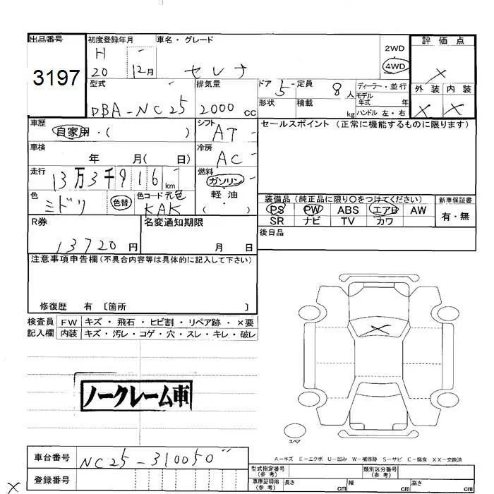 20S NO.1 EDITION NAVI PACKAGE | DBA-NC25 | MR20DE | Full-time 4WD | CVT | 1997cc | 129ps(95kW)/5200rpm | AИ-92 | 2 562 000 | |