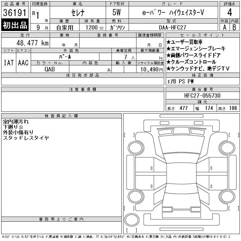 E-POWER AUTECH V PACKAGE | DAA-HFC27 | HR12DE | FF | CVT | 1198cc | 84ps(62kW)/6000rpm | AИ-92 | 3 773 000 | |
