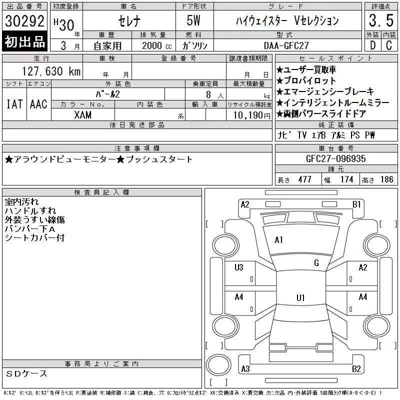 AUTECH V PACKAGE | DAA-GNC27 | MR20DD | Full-time 4WD | CVT | 1997cc | 150ps(110kW)/6000rpm | AИ-92 | 3 344 760 | |
