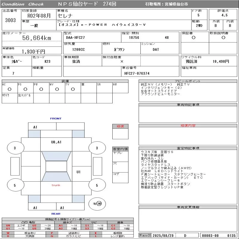 - Комплектация: 【オススメ】e-POWER Highway Star -V