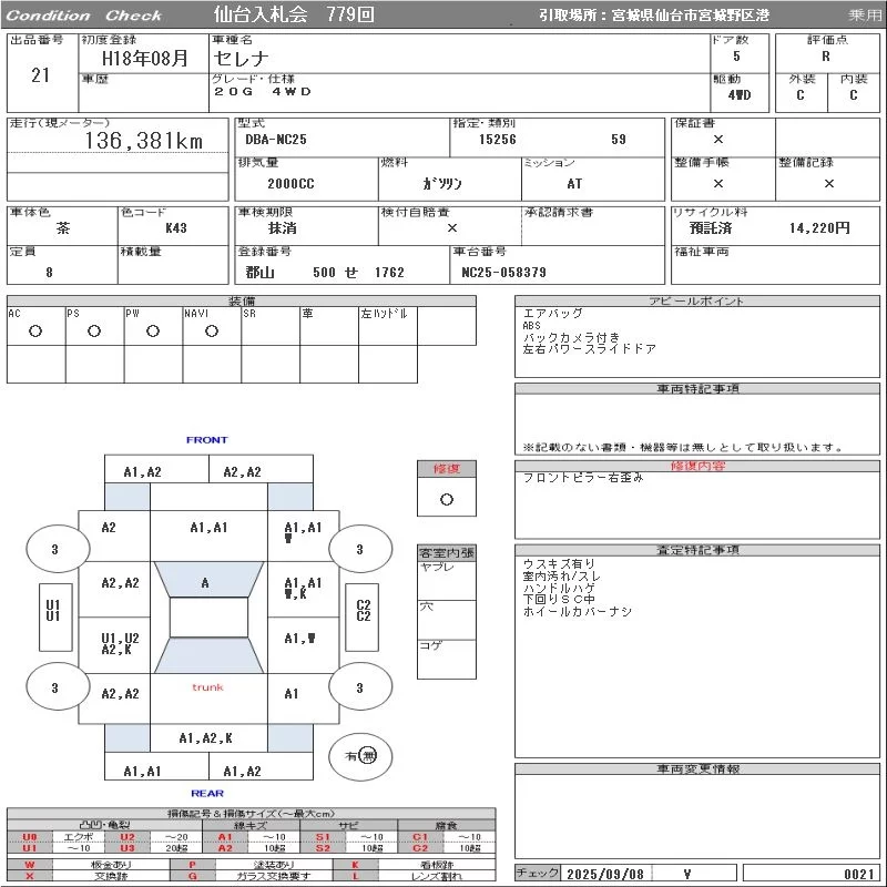 20G HDD NAVI EDITION | DBA-NC25 | MR20DE | Full-time 4WD | CVT | 1997cc | 129ps(95kW)/5200rpm | AИ-92 | 2 950 500 | |