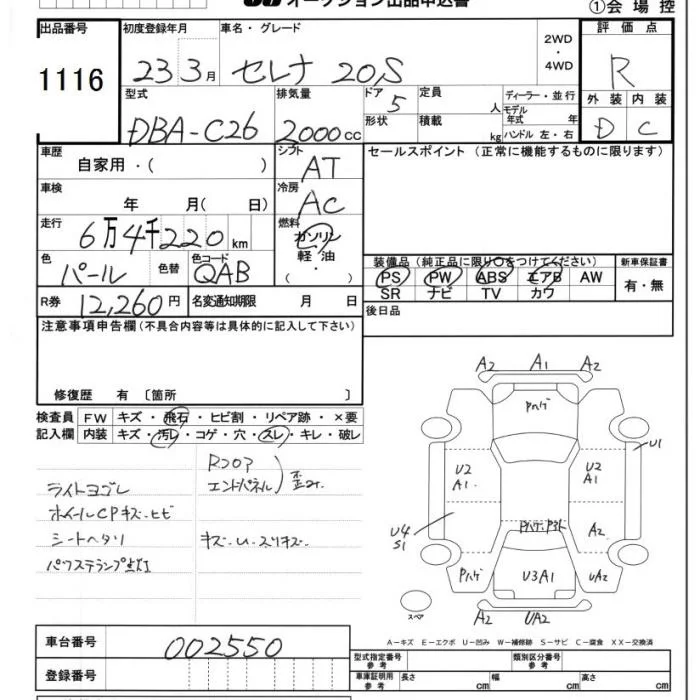 HIGHWAY STAR V AERO SELECTION | DBA-FC26 | MR20DD | FF | CVT | 1997cc | 147ps(108kW)/5600rpm | AИ-92 | 2 795 100 |