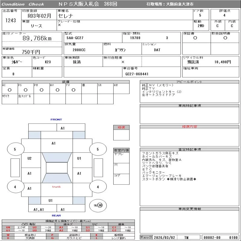 Надёжный авто с проверенного аукциона NPS Osaka Nyusatsu