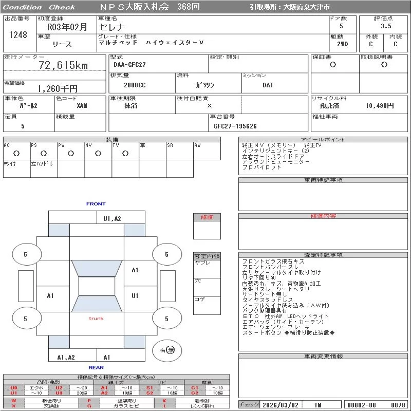 Надёжный авто с проверенного аукциона NPS Osaka Nyusatsu