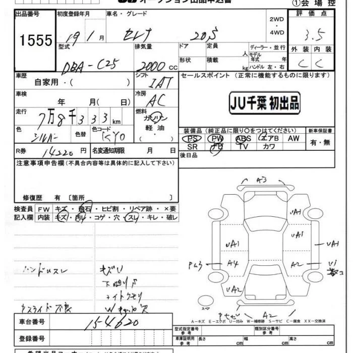 20G | DBA-C25 | MR20DE | FF | CVT | 1997cc | 137ps(101kW)/5200rpm | AИ-92 | 2 436 000 | |