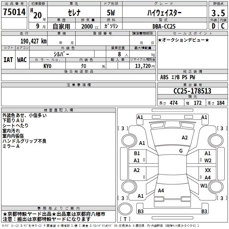 20S NAVI PLUS STEP SELECTION | DBA-C25 | MR20DE | FF | CVT | 1997cc | 137ps(101kW)/5200rpm | AИ-92 | 2 740 500 |
