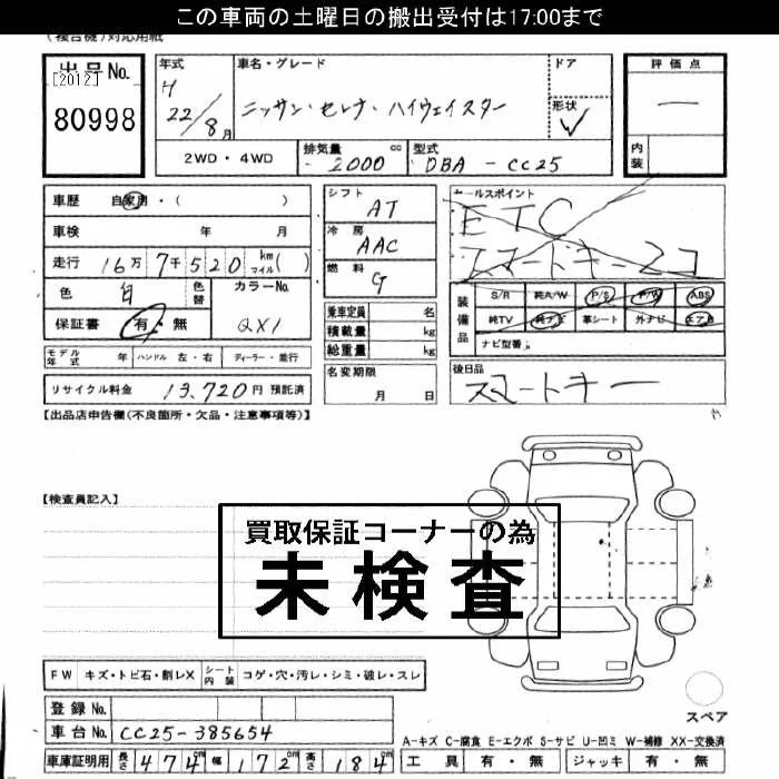 HIGHWAY STAR V AERO SELECTION PLUS NAVI HDD | DBA-CNC25 | MR20DE | Full-time 4WD | CVT | 1997cc | 129ps(95kW)/5200rpm | AИ-92 | 3 041 850 | |