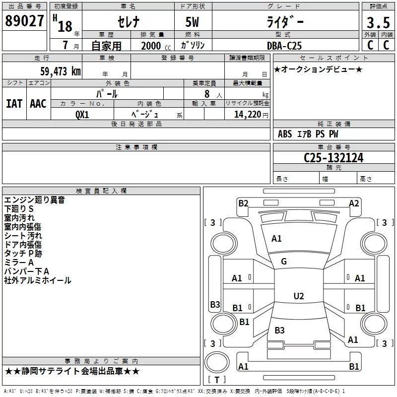 RIDER ALPHAII | DBA-C25 | MR20DE | FF | CVT | 1997cc | 137ps(101kW)/5200rpm | AИ-92 | 2 730 000 | |