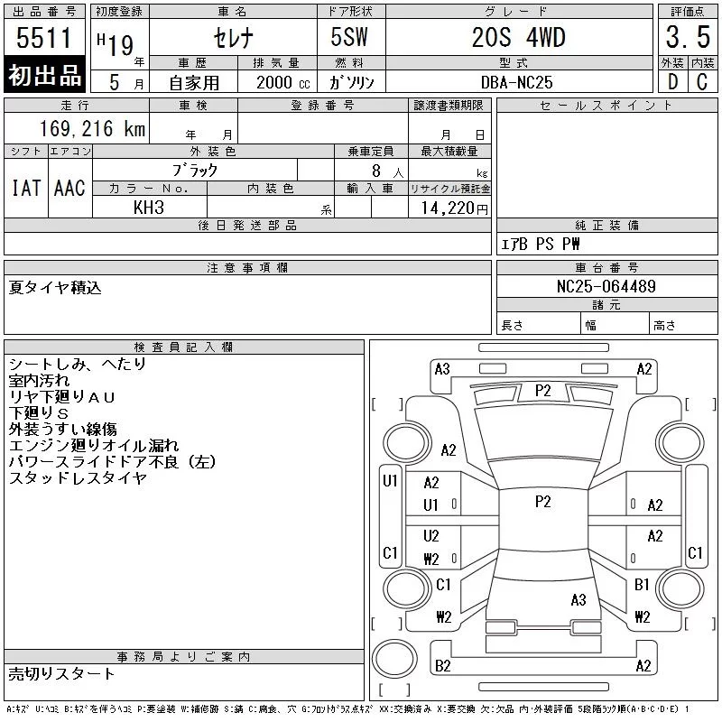 RIDER | DBA-NC25 | MR20DE | Full-time 4WD | CVT | 1997cc | 129ps(95kW)/5200rpm | AИ-92 | 2 819 250 | |