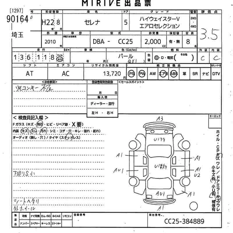 HIGHWAY STAR V AERO SELECTION PLUS NAVI HDD | DBA-CNC25 | MR20DE | Full-time 4WD | CVT | 1997cc | 129ps(95kW)/5200rpm | AИ-92 | 3 041 850 | |
