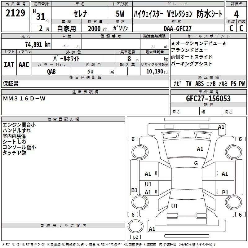 HIGHWAY STAR V | DAA-GFC27 | MR20DD | FF | CVT | 1997cc | 150ps(110kW)/6000rpm | AИ-92 | 2 932 200 | |