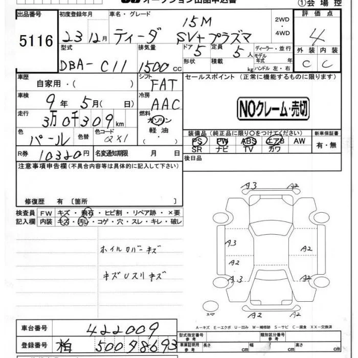 AXIS(WHITE LEATHER) SV+PLASMA | DBA-NC11 | HR15DE | Full-time 4WD | 4AT | 1498cc | 109ps(80kW)/6000rpm | AИ-92 | 2 104 200 | |