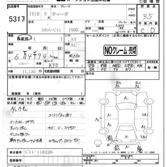 15G | DBA-C11 | HR15DE | FF | CVT | 1498cc | 109ps(80kW)/6000rpm | AИ-92 | 1 808 100 | |