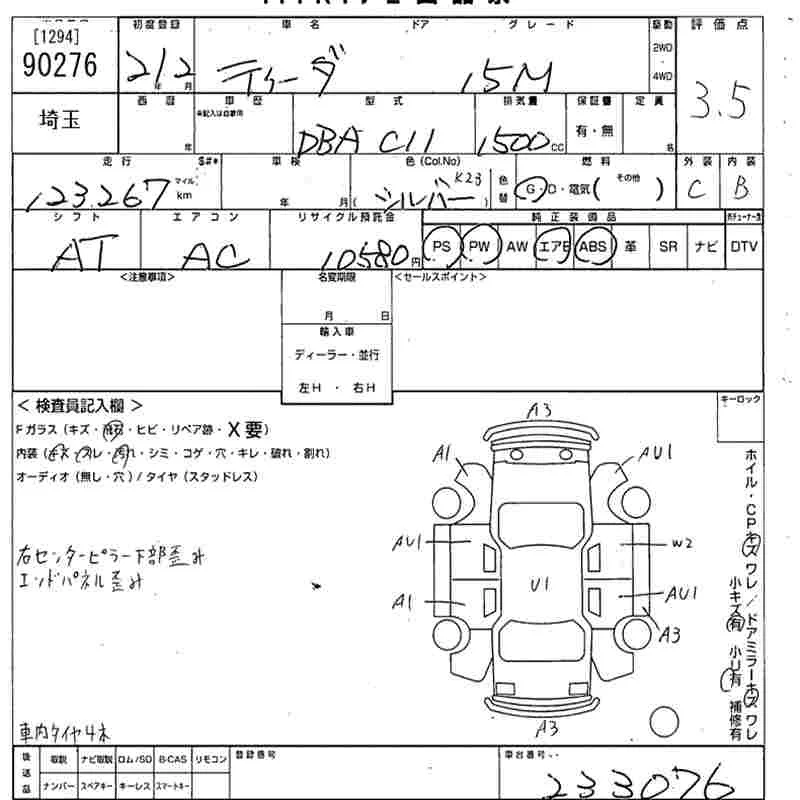 15G | DBA-C11 | HR15DE | FF | CVT | 1498cc | 109ps(80kW)/6000rpm | AИ-92 | 1 816 500 | |